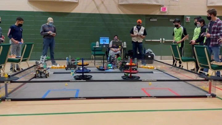 FIRST Robotics Competition (Grades 9-12): FRC students compete in larger teams with industrial sized robots. Guided by professional mentors, students must raise funds, create a team brand, and use teamwork skills to build large scale robots. By adapting to strict constraints, using limited resources, and navigating unexpected challenges, FRC provides as close to a real-world engineering experience as possible.